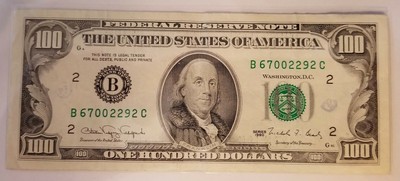 Old Paper Money 1993 One Hundred 100 Dollar Bill Feder