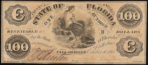 1861 100 Dollar Bill State Florida Tallahassee Note Currency Old Paper Money Au Ebay