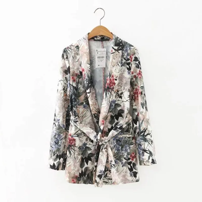 Mode Elegante Imprime Fleuri Femmes Blazers Ete Mince A Manches Longues Veste Costume Femmes Mince Ceintures Blazer Feminina Aliexpress