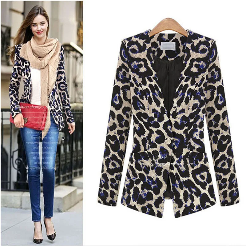 Blazer Veste Femme Mi Long Imprime Animal Leopard Slim Tidebuy Com