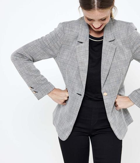 Veste Blazer Imprime Prince De Galles Morgan Noir Vetements Femme Soldes Jusqu A 60 Galeries Lafayette