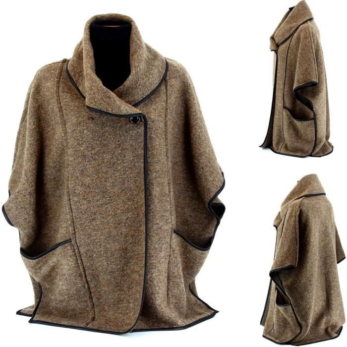 Manteau De Laine Femme Veste Loose Fit Manches Longue Cape Automne Hiver Grande Taille