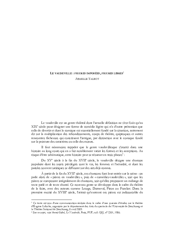 Pdf Le Vaudeville Figures Imposees Figures Libres Armelle Talbot Academia Edu