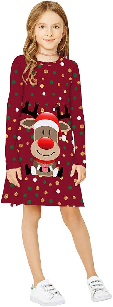 Walabe Robe Fille 12 Ans Noel Robe Noel Bebe Fille Ceremonie Hiver Robe Pull Enfants Fille Manches Longues Impression 3d De Noel De Bande Dessinee Vetements Amazon Fr Vetements Et Accessoires