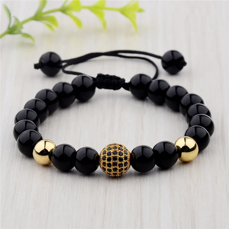 Luxe Hommes Zircon Micro Pave Rond Boules Macrame Cuivre Perle Reglable Bracelet Ebay