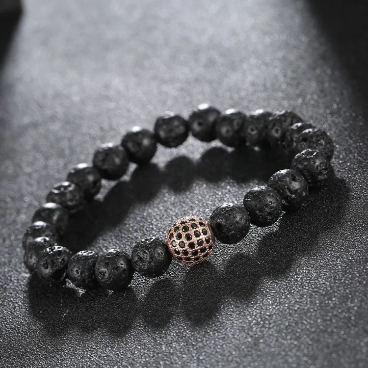 10mm Pave Rose Male Disco Ball Black Cz Zirconia Bracelet Black Lava Stone Bead Bracelets For Men Women Jewelry Bracelets For Bead Braceletstone Bead Bracelet Aliexpress