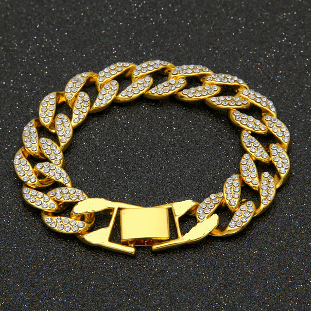 Chaines Bracelets Homme Lien Cubain Zircon Cubique Plaque Or Imitation Diamant Precieux Luxe Mode Hip Hop Hip Hop Glace Bracelet Bijoux Doree Argent Forme De Cercle Pour Quotidien Travail De 21 A
