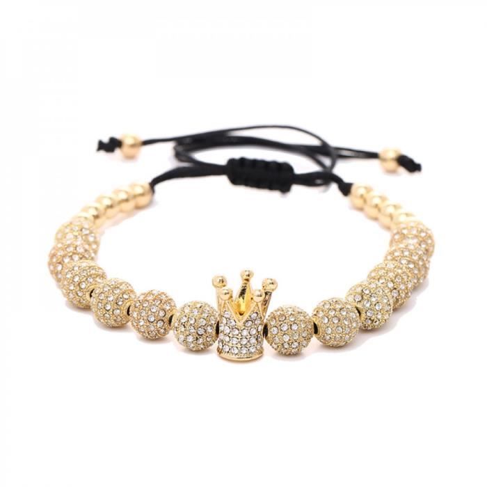 Bracelet Femme No2113 Zj1001g Bijoux Luxe Hommes 8mm Boule Cuivre Cubique Micro Pave Cz Couronne Breloque Perle Tressee Macrame Achat Vente Bracelet Gourmette Bracelet Femme No2113 Metal Oxyde De Zirconium Cd