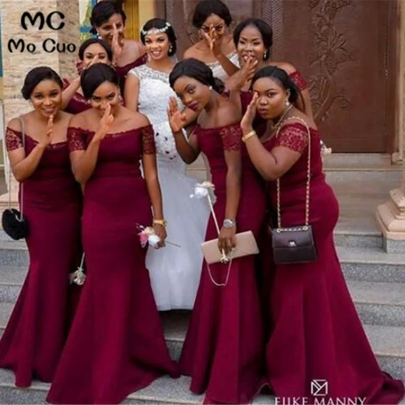 Sud Africain En Stock Sirene Hors Epaule Robes De Demoiselle D Honneur Longue Robe De Soiree De Mariage Arabe Bourgogne Dentelle Robe De Demoiselle D Honneur Aliexpress