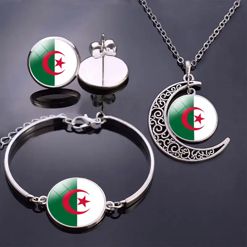 Ensemble De Bijoux Drapeau Algerien Drapeau Algerien Ensemble Boucles D Oreilles Bracelets Et Colliers Cabochons En Verre Aliexpress