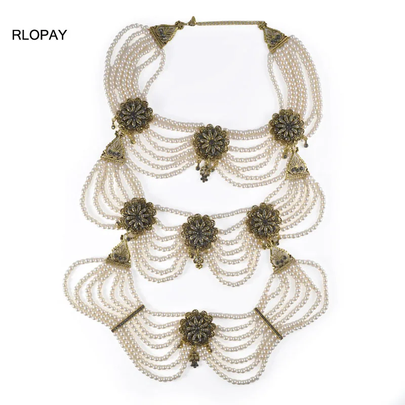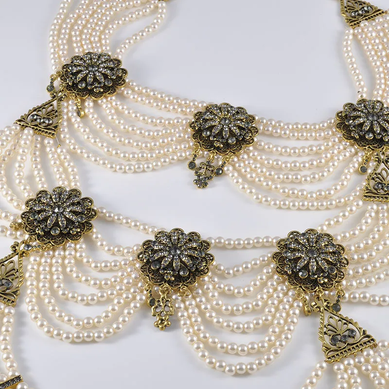 Rlopay Grand Collier De Perles De Mariee Bijoux Pendentif En Cristal En Plaque Or Antique Algerie Bijoux Fantaisie De Mariage Pour Les Femmes Aliexpress