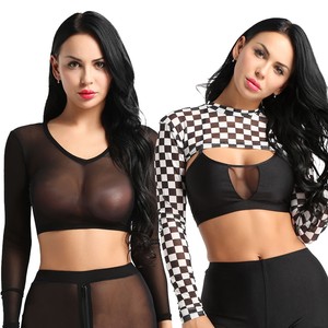 Femmes Crop Top Dames De Noir Maille Dentelle T Shirt Resille A Manches Longues Extensible Transparent Gilet T Shirt Femmes Sexy Tops T Shirts Aliexpress