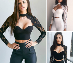 Top Crop Noir En Dentelle Manches Longues Fashion Kate Com