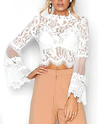 Femme Blouse En Dentelle Printemps Transparent Elegante Mode Ete Festival Crop Top Manches Longues Rond Col Slim Fit Fashion Party Sans Ventre Haut Chemisiers Shirt Blanche Amazon Fr Vetements Et Accessoires