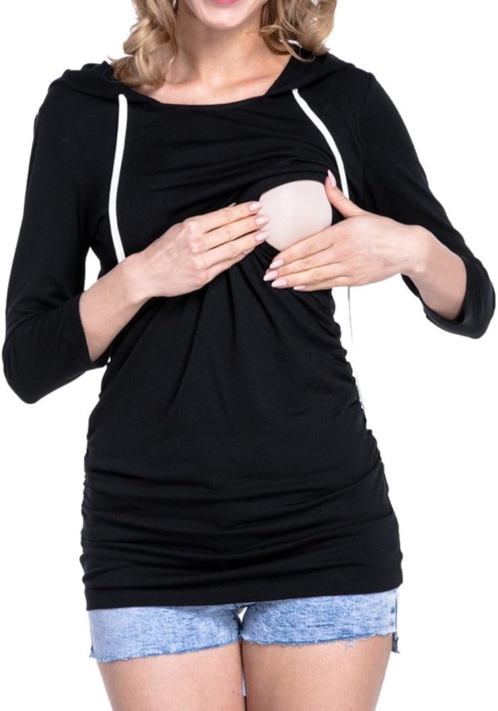 Longra Enceinte Maternite Haut Manche Longue Dentelle Chemise Mode Casual Tank Tops Couche Double Chemisier Elegante Tunique Tee Shirt Vintage Boheme Crop Top Col Rond Chemisier Recharges Poubelles A Couches Le Change