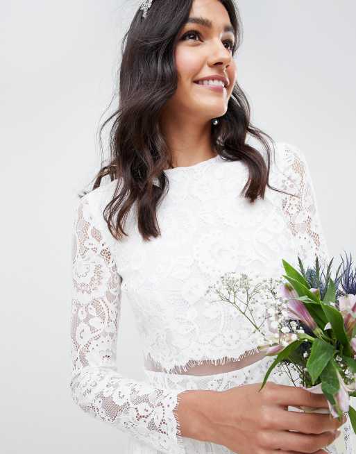Asos Edition Robe Longue De Mariee En Dentelle Avec Crop Top A Manches Longues Asos Petite Robe De Mariee Robe De Mariee Robe De Mariage
