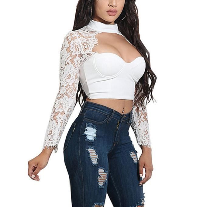 Femme Voir Par Dentelle Mesh Sheer Crop Top A Manches Longues T Shirt Chemisier T Blanc Blanc Achat Vente T Shirt Soldes Sur Cdiscount Des Le Janvier Cdiscount