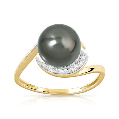 Bague Or 375 2 Tons Perle De Culture De Tahiti Diamant Femme Bague Maty