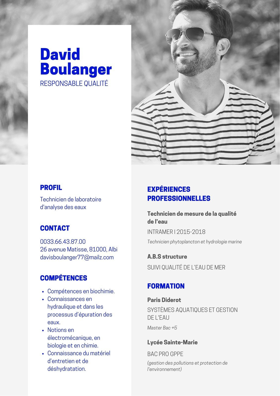 Un modèle PSD pour un CV très aéré avec des informations visibles très rapidement et facilement Une photo sous forme de badge et de nombreuses icônes pour alerter l’œil du lecteur Découvrir Template PSD gratuit pour CV. Exemple de CV Avec Photo Des centaines de modèles à télécharger Quelques conseils pour mettre une photo sur son CV La forme basique du curriculum vitae n’oblige pas à mettre une photographie de vous Toutefois, les candidats à un poste cherchent de plus en plus à se démarquer en mettant une photo qui les met à leur avantage. Vu sur creeruncvcom mai téléchargez cet exemple de cv avec photo sur notre site consultez également les autres modèles de cv gratuits !.