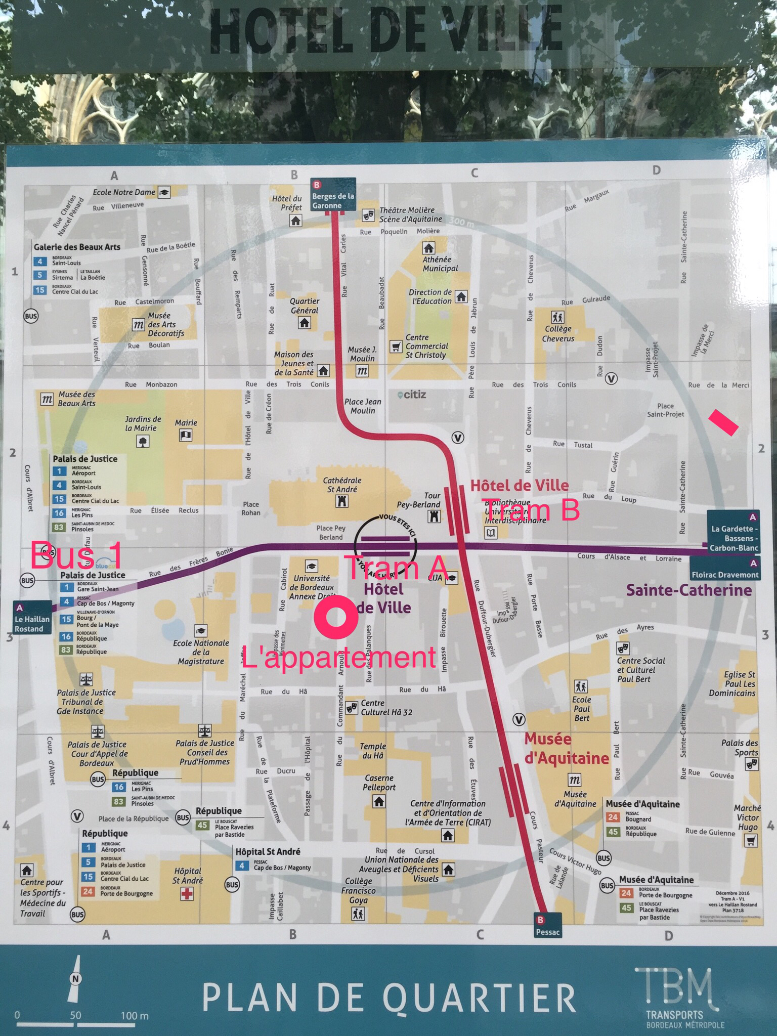 Line A of the Bordeaux tramway starts at Le Haillan Rostand in the western suburbs of Bordeaux and runs in a easterly direction towards the city centre An intermediate terminus is passed at Pin Galant, where some trams from the east terminateIn the city centre it crosses and has an interchange with line B at Hôtel de Ville, and with lines C and D at Porte de Bourgogne. Très beau quartier a deux pas du centre ville et des berges de Bordeaux Plutot calme La literie était bonne Seul bémol le parking un peu cher et les parkings autour de la résidence paq facile à trouver Mais dans l'ensemble très bon séjour dans cette résidence en plein centre de Bordeaux. Promenade St Catherine Le centre commercial “Promenade SainteCatherine”, niché au cœur de Bordeaux centre, affiche un bon bilan sur le plan de la commercialisation de ses espaces de venteA plus d’un an de sa livraison, la foncière Redevco France annonce un taux d’occupation qui dépasse déjà les 65 %.