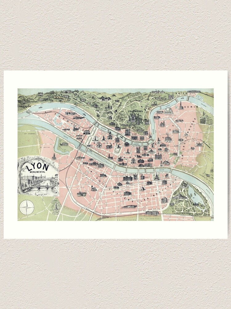 Vintage Map Of Lyon France 14 Art Print By Bravuramedia Redbubble