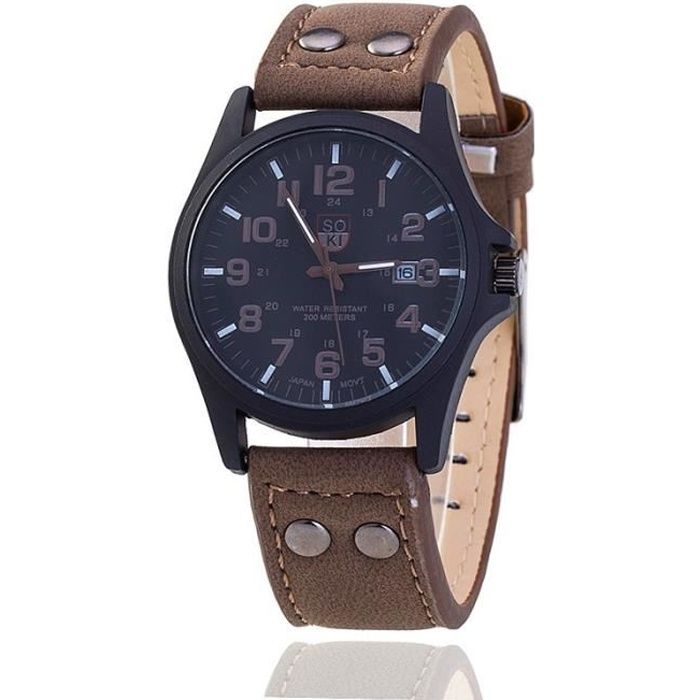 Montre Homme Militaire Extra Plate Avec Dateur Bracelet Cuir Top Tendance Achat Vente Montre Montre Homme Militaire Extr Cdiscount