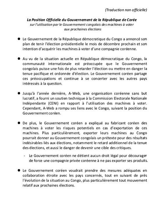 Samira Sawlani Govt Of South Korea Release Statement Expressing Concerns Over Govt Of Dr Congo S Purchase Of Electronic Voting Machines Ahead Of The December 18 Elections From South Korean Firm