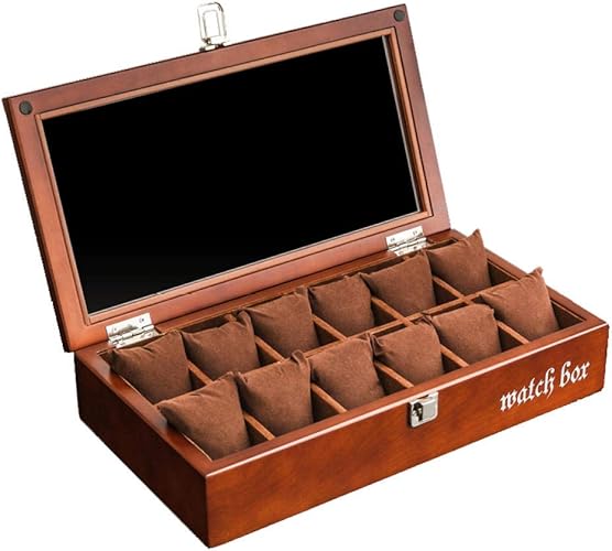 Fionat Boite A Montres Boite A Bijoux Homme Voyage Femme Cadeau Toit Ouvrant En Verre Vintage En Bois Avec Couvercle Basculant Paquet De 12 Boite De Rangement 37 19 7 7 6cm Marron Amazon Fr Bijoux