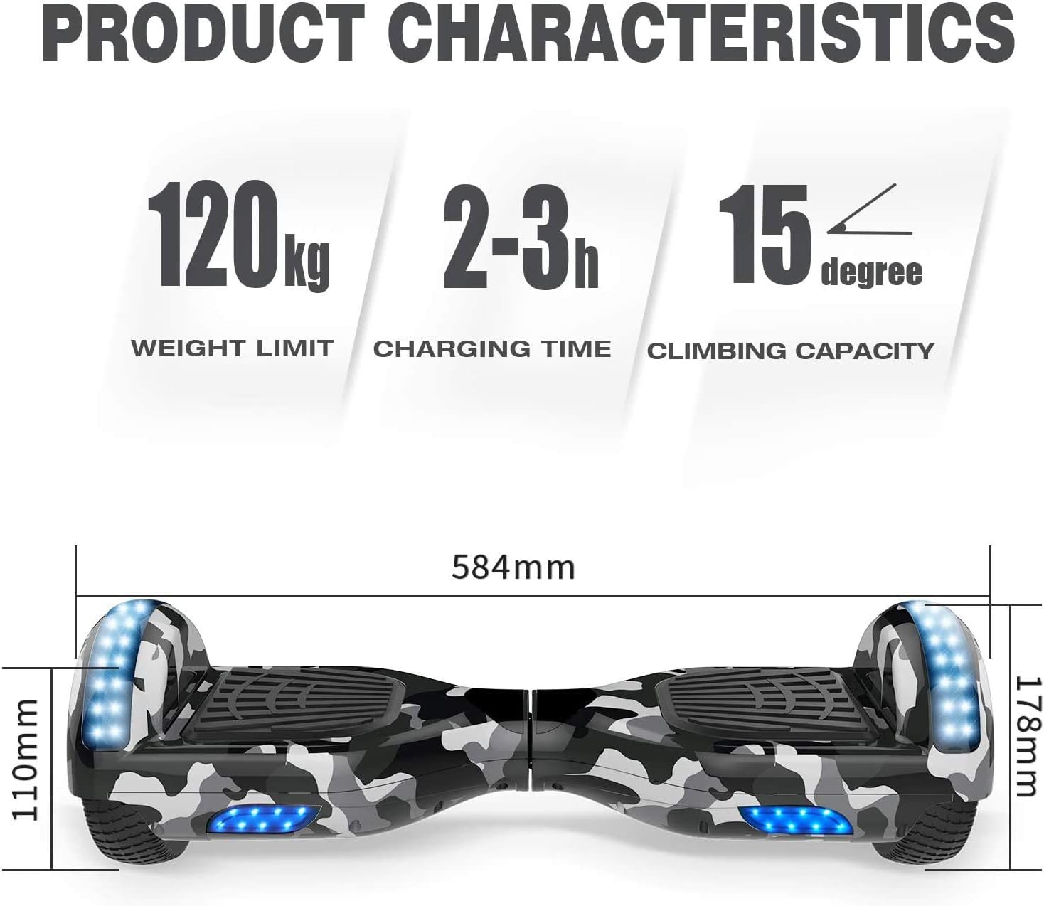 Bebk Hoverboard 6 5 Patin Electrique 3 350 W Moteur Led Batterie De Lithium Et Autonomie De 12 Km H Scooter Electrique Scooter Electrique Scooter Plein Air
