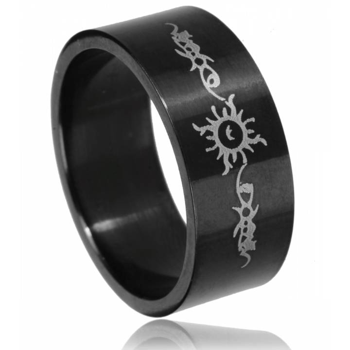 Bague Homme Acier Rhutenium Noir Bombee Tribal