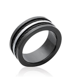 Vente Bague Homme Noire En Acier A Encoche Avec Cable Metallique