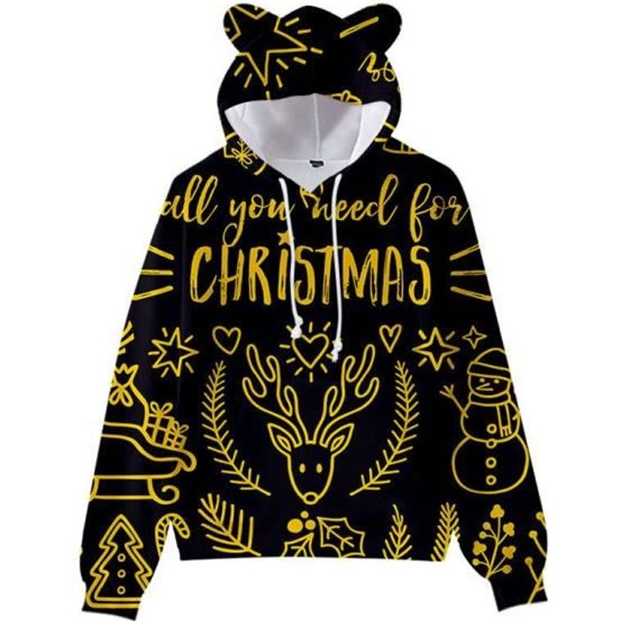 Doringin Pull Imprime Style Noel Pour Enfant Fille Garcon Pull A Capuche D Oreille De Chat Jaune Achat Vente Pull Cdiscount