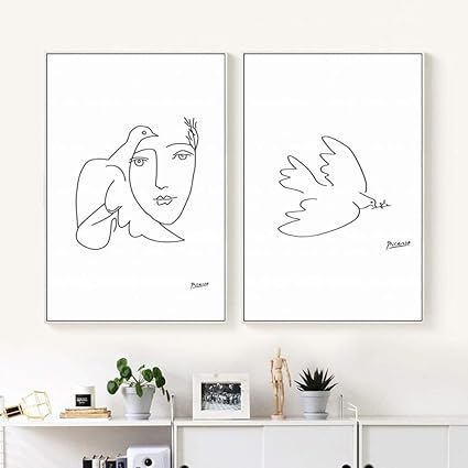Picasso Colombe De La Paix Abstrait Noir Et Blanc Ligne Art Peinture Impression Sur Toile Affiche Photo Mur Salon Decor A La Maison 40x50 Cm X 2 Pas De Cadre Amazon Fr Cuisine