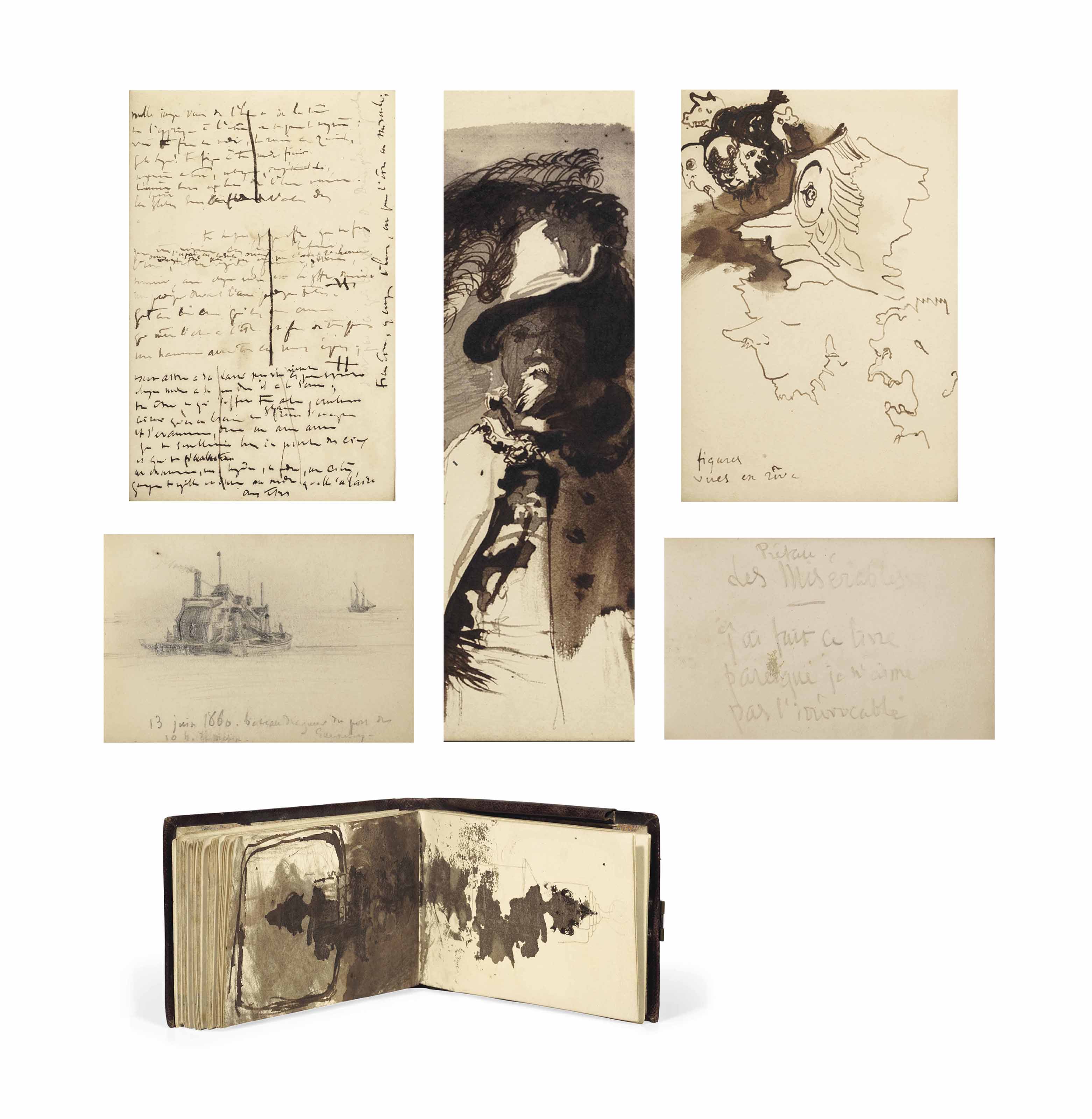 Hugo Victor 1802 15 Carnet De Notes Autographes Dessins Et Croquis Originaux 64 Feuillets Non Lignes En Comptant Les Gardes Dont Un Seul Laisse Vierge Encre Et Crayon Entre 1856 Et Au Moins 1860
