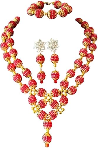 2 Rangees De Boules Rouge Perle Pour Femme Africain Perles Collier De Mariage Ensemble De Bijoux De Perles D Afrique Du Nigeria Ensemble De Bijoux Pour Les Femmes Amazon Fr Bijoux