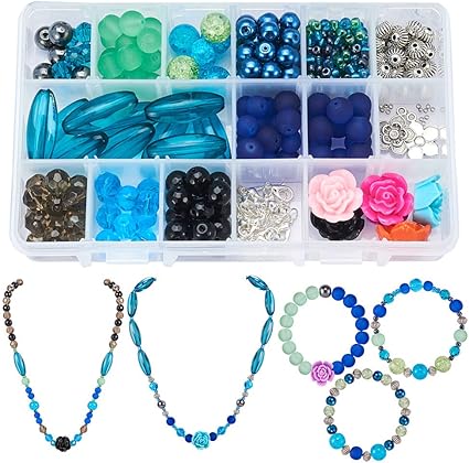 Sunnyclue 1 Set 350 Pcs Kit De Fabrication De Bijoux De Luxe En Perles De Rocaille Avec Bracelet Kits De Bricolage Pour Enfants Filles Adultes Enfants Bleu Et Vert Amazon Fr Cuisine Maison