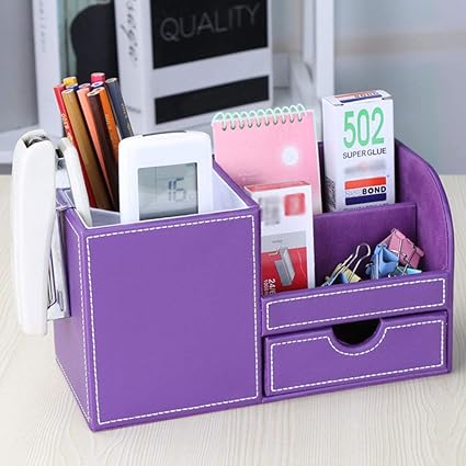 Organiseur De Bureau Papeterie 4 Compartiments Grande Capacite En Cuir Pu Support De Rangement Avec Tiroir Boite Pour Fournitures De Bureau Accessoires De Bureau Free Size Violet Amazon Fr Fournitures De Bureau