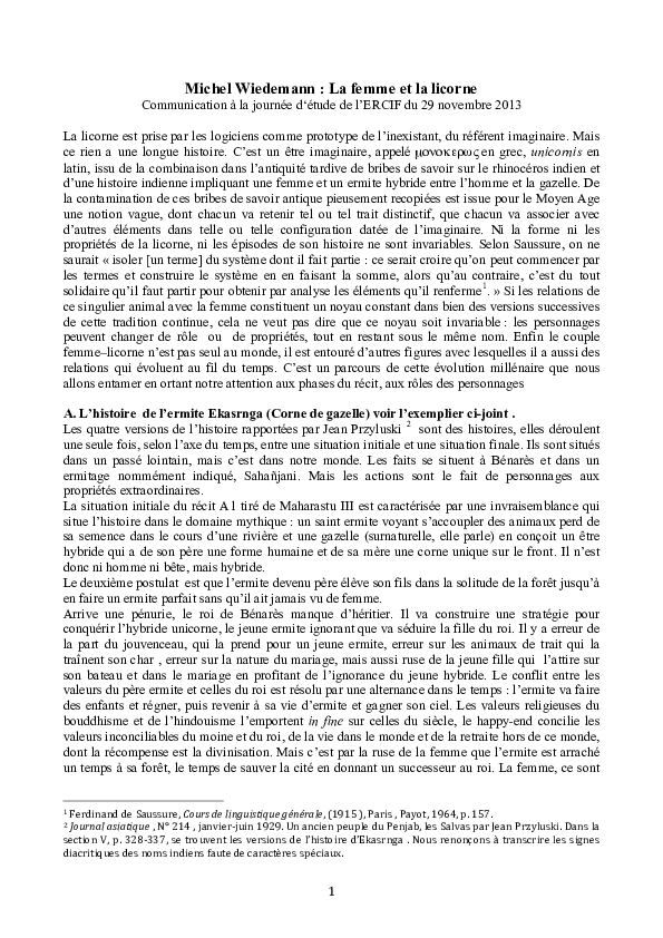Pdf La Femme Et La Licorne Michel Wiedemann Academia Edu