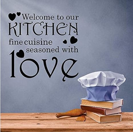 Amazon Com Welcome To Our Kitchen Fine Cuisine Seasoned With Love Image Quote Vinyl Wall Decal Sticker Color Black Size x Home Kitchen