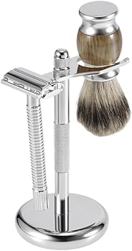 Set De Rasage 3 Pieces Chrome Rasoir De Securite Blaireau Silver Tip Mencorner 3 Suisses