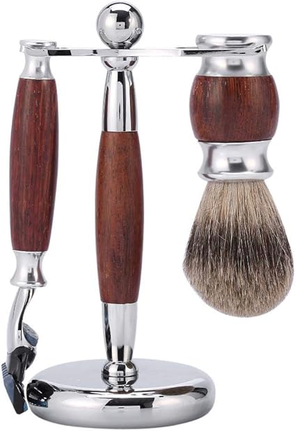 Sharplace Kit Rasage Homme En Acier Inox Et Palissandre Qualite Haut De Gamme Brosse A Raser En Poils Blaireau Rasoir A Barbe Support Stand Amazon Fr Beaute Et Parfum