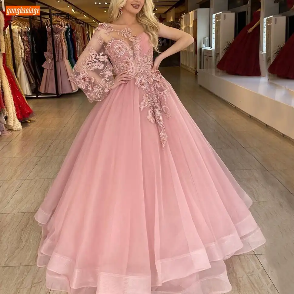 Fashion Pink Prom Dresses Long Lace Appliqued 3d Flowers Beach Sexy Women Party Gown Vestidos De Gala Customized Robe Femme Prom Dresses Aliexpress
