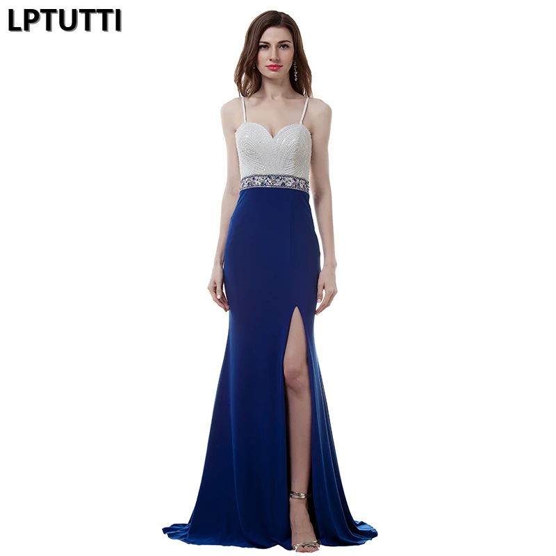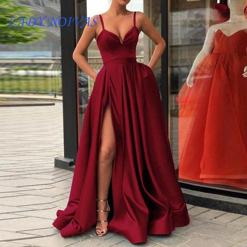 Vestidos De Gala Royal Blue Satin Prom Dresses Long Sexy High Split Robe De Bal Femme Longue Plus Size Red Evening Dress Prom Buy At The Price Of 100 10 In Aliexpress Com