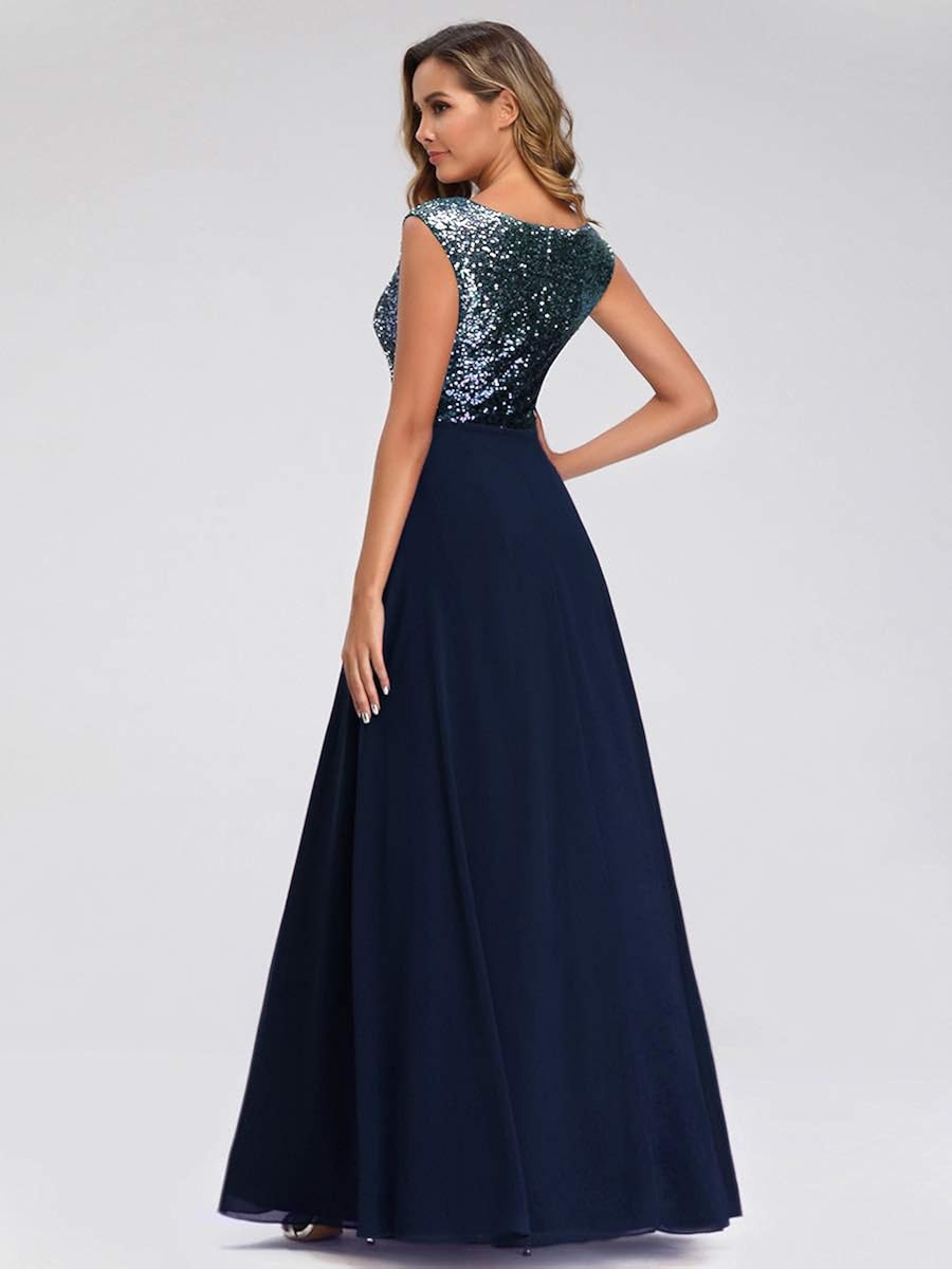 Femme Ever Pretty Robe De Soiree Longue Col En V A Paillettes Mousseline Femme Pour Bal Gala Bapteme Vetements Hovdenhoyfjellsenter No