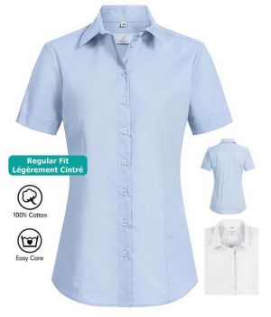 Chemisier Femme Manches Courtes Coupe Classique Polyester Coton