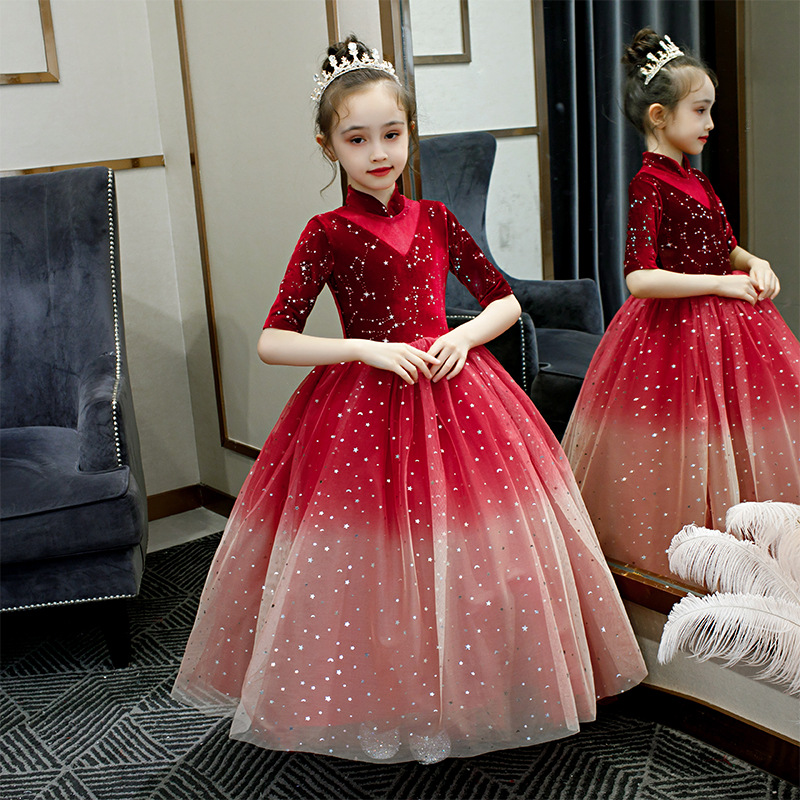 Girls High End Drag Tail Lace Beauty Ball Dress Fashion Elegant Flower Girl Princess Host Weddin African Dresses For Kids Kids Fashion Dress Kids Party Dresses