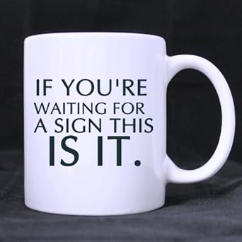 Amazon Com Funny Quotes Mug If You Re Waiting For A Sign This Is It 11 Oz White Cup Coffee Mug Milk Juice Tea Mug Two Sides Unique Novelty Gift For Lovers