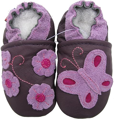 Carozoo Purple Butterfly Flower Chaussons En Cuir Souple Pour Bebe Fille Avec Semelle Souple Violet Violet 6 12 Mois Amazon Fr Chaussures Et Sacs