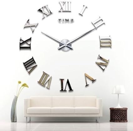 Yosoo Diy 3d Horloge Murale Design Geante Grande Taille Moderne Ronde Avec Chiffres Romains Pour Decoration Salon Bureau Argent Amazon Fr Cuisine Maison