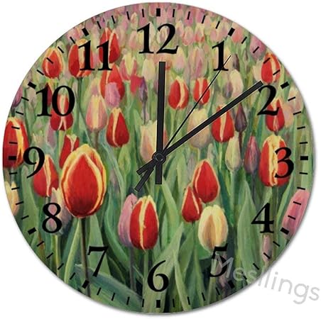 Mesllings Horloge Murale En Bois Avec Tulipe A L Aquarelle Decoration Murale Pour Cuisine Bureau Retro Accessoires De Decoration D Interieur Amazon Fr Cuisine Maison